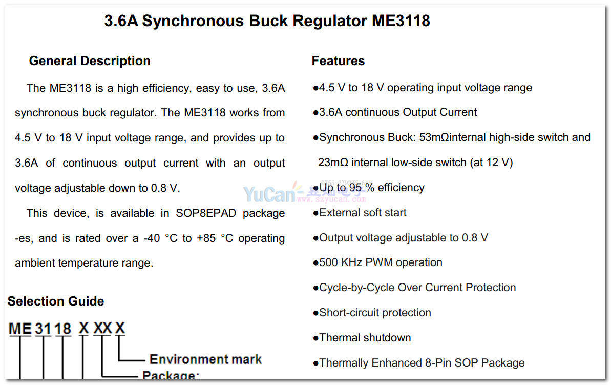 ME3118ASPG SOP-8L 輸入4.5-18V 輸出3.6A ADJ