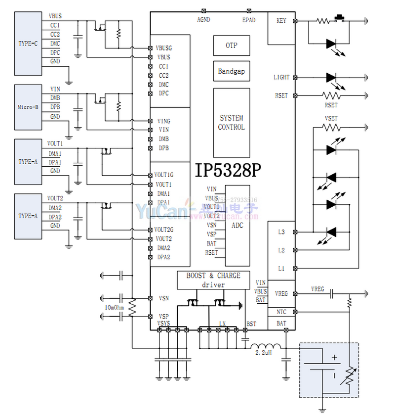 IP5328P 支持雙向快充等協(xié)議移動電源SOC