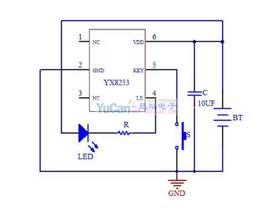YX8253是一顆用輕觸開關(guān)控制功能切換的LED功能驅(qū)動(dòng)芯片,可以直接驅(qū)動(dòng)1-5WLED,采用了極小的SOT23-6封裝形式,僅需要一顆電容器件,可節(jié)省PCB空間,又節(jié)省系統(tǒng)的成本。三節(jié)干電池或一節(jié)鋰電可以驅(qū)動(dòng)1-5W的LED。通過輕觸開關(guān)控制LED不同功能變化