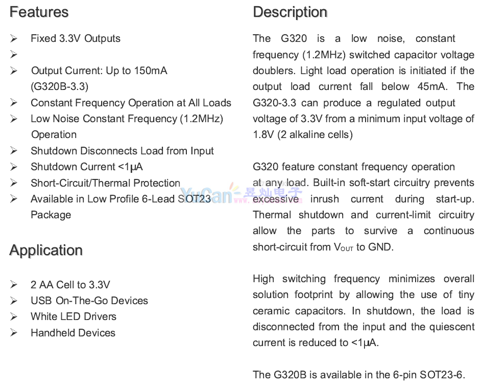 G320A SOT23-6 5V 250mA 400K工作頻率 G320的升級(jí) 新版主推