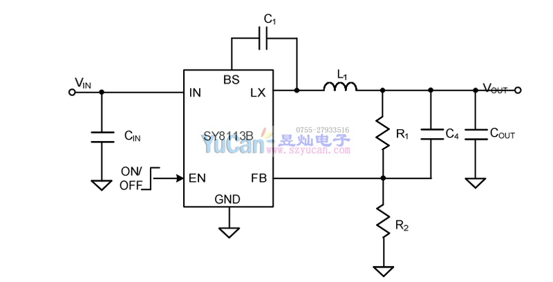 SY8113B是一種高效的500khz同步降壓DC-DC變換器,能夠輸出3A電流。SY8113B工作在4.5V ~ 18V寬輸入電壓范圍內(nèi),集成低內(nèi)阻開關(guān)MOS將導通損耗降到最低。輸出電壓脈動小,外部電感和電容器尺寸小,開關(guān)頻率為500khz。采用瞬時PWM架構(gòu),實現(xiàn)高階躍應用的快速瞬態(tài)響應